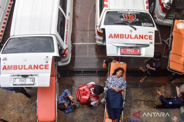 Petugas PMI mengevakuasi siswa korban keracunan di SMP Negeri 3 Kota Banjar, Jawa Barat, Rabu (1/10/2025). Dinas Kesehatan Kota Banjar mengevakuasi siswa yang diduga keracunan MBG untuk dilakukan penangan dan perawatan di rumah sakit RSU Banjar Patroman, RSUD Banjar, dan Mitra Idaman. ANTARA FOTO/Adeng Bustomi/agr